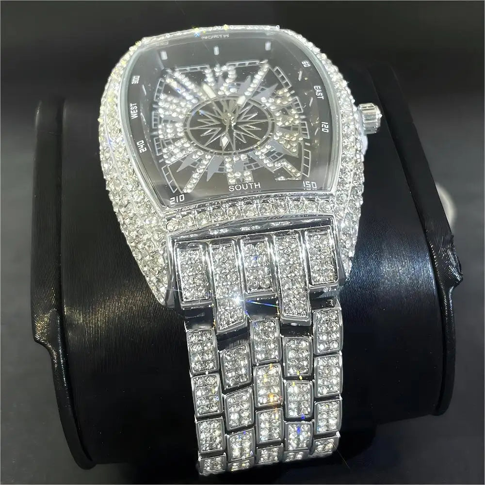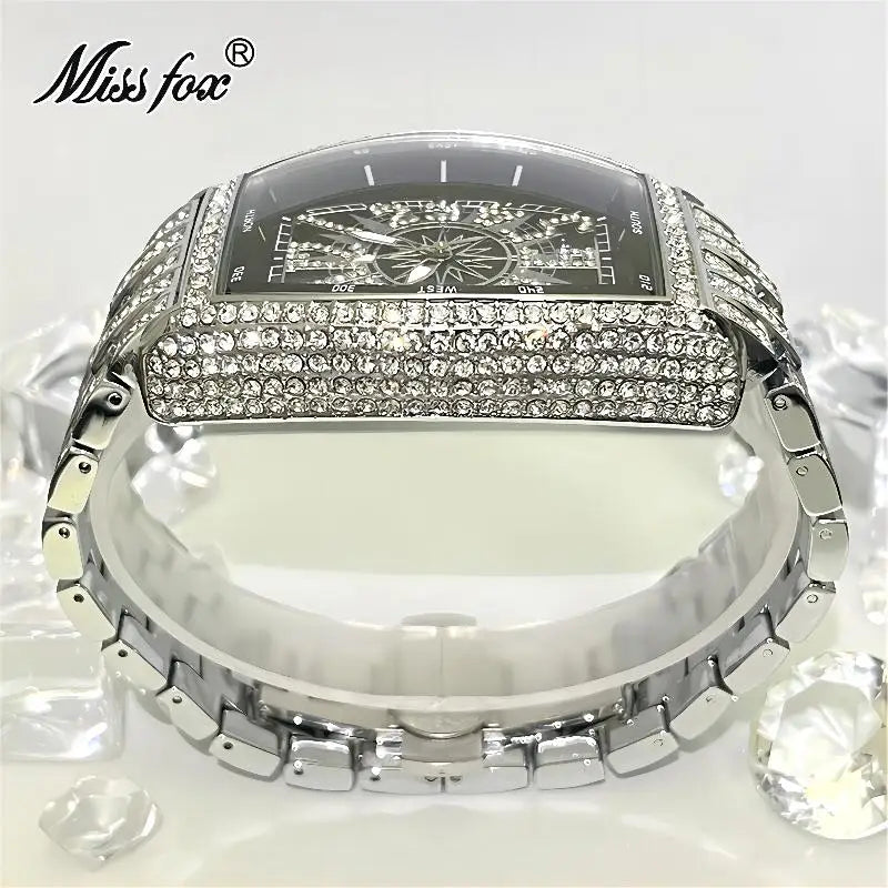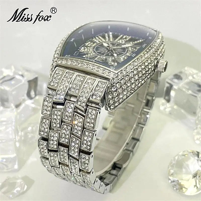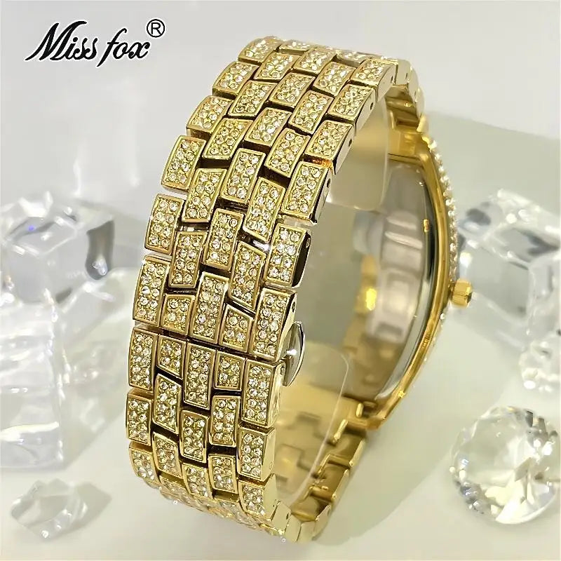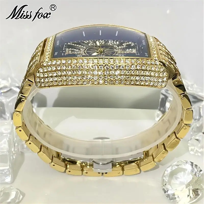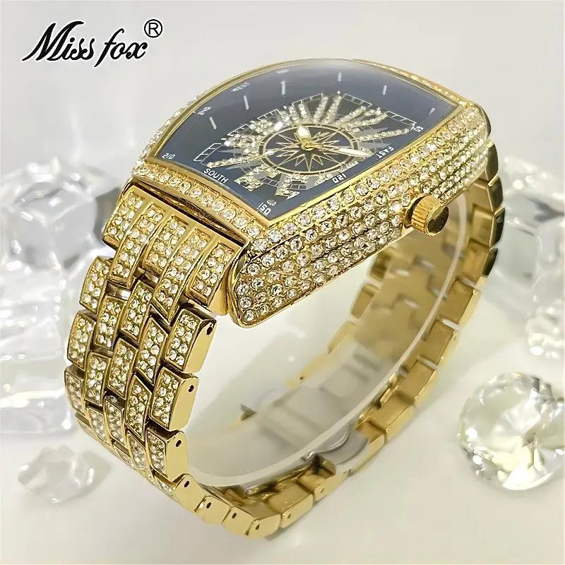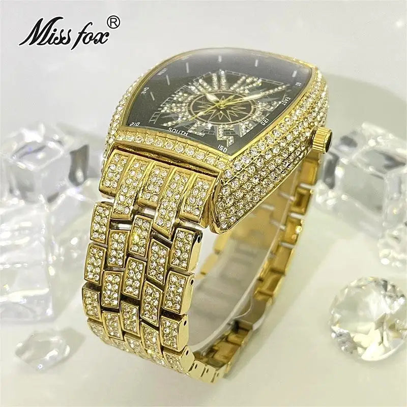 Luxury Gold Watches Men Brand MISSFOX Fashion Hip Hop lce Diamond Sun Pattern Literal Quartz Wristwatch Male Dropshipping Hot